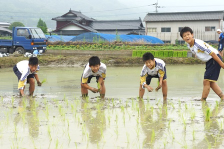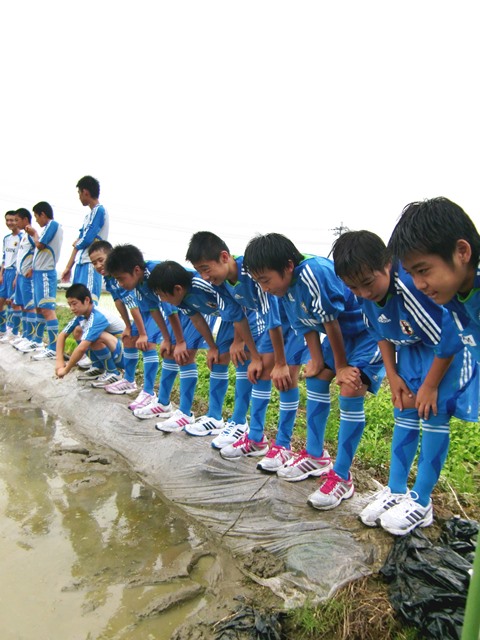 小川町サッカー協会会長でメロンアート体験でもお世話になっている徳永さんの田んぼで田植えをさせていただきました。