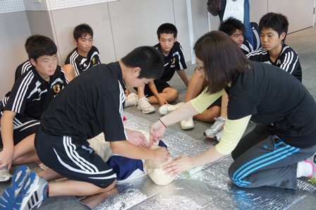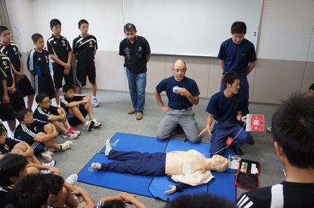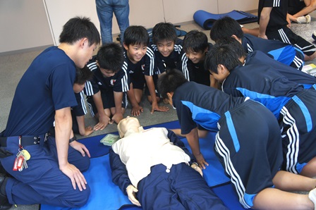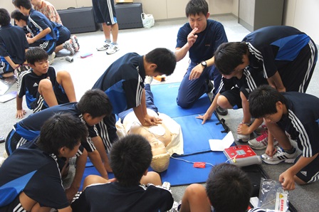選手たちは心肺蘇生法の講習会を受けるのが初めて。