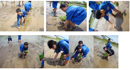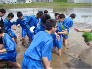 本日、5期生がJFAプログラムの1つ労作教育「田植え」を行った。