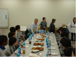 ↑待ってましたと言わんばかりの食事。広野町の方々に準備していただいた。