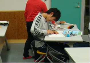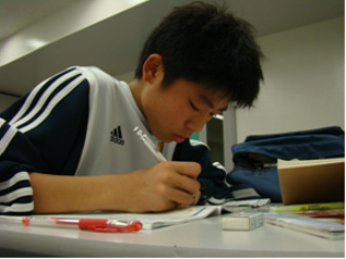 上の写真は家庭教師の先生をお願いして学習をサポートしていただいている場面である。