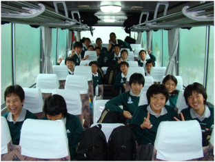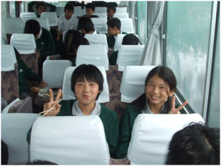バスの車内では、女子以上に男子の方が元気よく、女子はその勢いに圧倒され、さっき