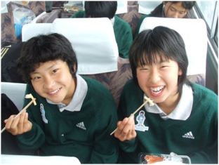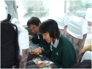 バスが見えると「来た~~~っ!!」の声とともに、自分たちの荷物と昼食をパッと持ち、