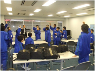少し緊張した面持ちでスタッフの話を一生懸命に聞いていました。そのあと男子・女子それ