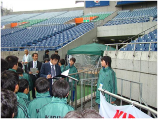 日韓戦が行われるスタジアムを見た子どもたちは、再びテンションが上がり始め、一緒に