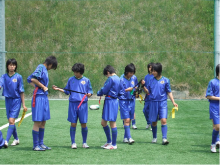 最後に忙しい時間の中、タグラグビーの楽しさや、サッカーに通じる要素を学ぶ機会を作って