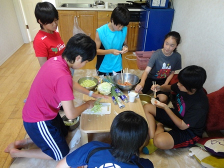 5つの班にわかれて、主食、おかず、デザートを分担し作りました!