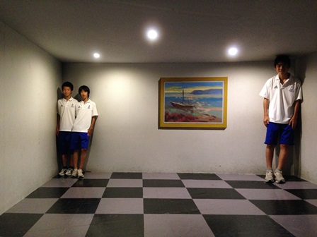 平面に書いてある絵が立体的に見えたり、いつもより人が大きく見えたりいろいろな仕掛けのトリック