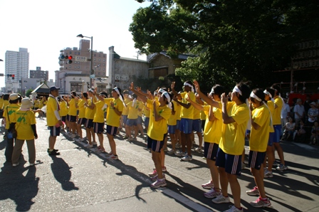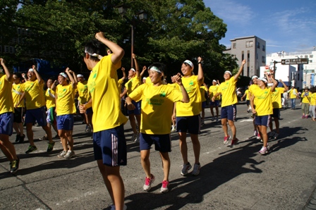 みしまサンバは富岡高校と三島長陵高校が一つになろうという願いで、一緒になって踊ります。
