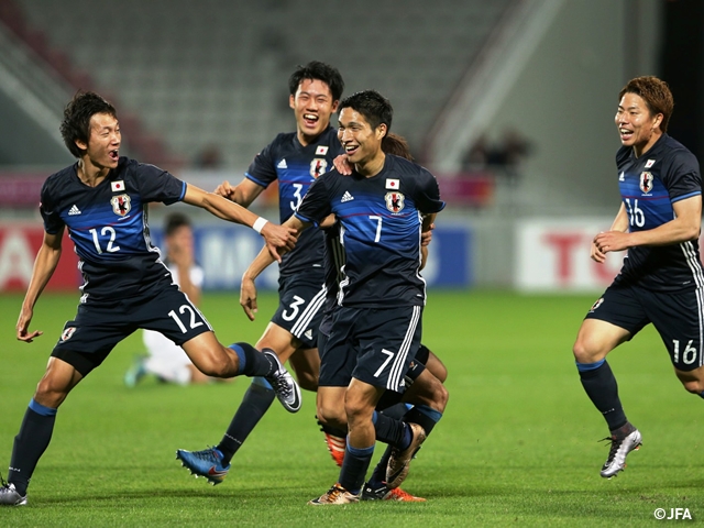 所属クラブで試合に出られていないときも、手倉森監督は僕を招集してくれていました。何とか恩返ししたいと思っていたので、こういう形で勝利に貢献できてうれしいです。得点場面は自分の右からプレッシャーがきていたのが見えたので、ボールを左に置いて、ワクを外さないようにシュートしました。ゴールが決まった瞬間は、自分のところからは見えなかったのですが。優勝してリオデジャネイロオリンピックに出場することが大事なので、次の試合もしっかり戦いたいです。