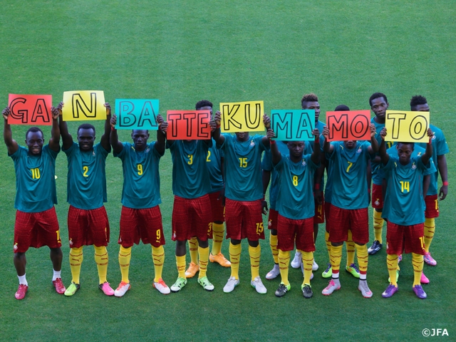 熊本県および九州地域を震源とする熊本地震の復興支援のため、収益の全てを義援金として寄付する本大会。日本サッカー協会は、さらなる復興支援活動の一環として、特別協賛社であるMS&ADインシュアランス グループ ホールディングス株式会社の協力を得て、甚大な被害のあった熊本県益城町や西原村を拠点とするFC BIGWAVE、FC Le・reve、益城ルネサンス熊本FC、ビアンカス西原の選手を招待し、U-23日本代表の戦いぶりを間近に感じていただく機会を設けました。