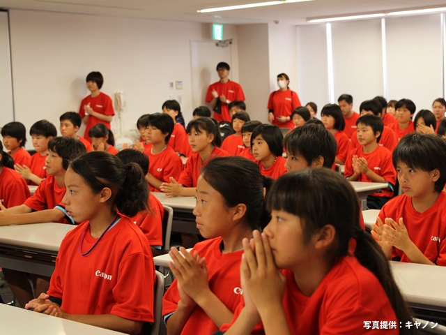 「キヤノンプログラム」では、ゲストの高倉麻子監督が、「サッカーは楽しい」という話から始まり、各年代の代表活動の様子を交え、今回参加している選手たち自身が「世界で戦う」ことを確かな目標にしてほしいという想いを語りました。