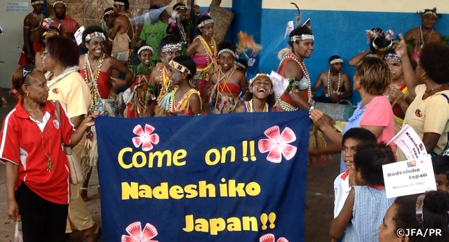 U-20日本女子代表は、23日(月)、パプアニューギニアの首都ポートモレスビーに到着しました。11月に行われるFIFAU-20女子ワールドカップが開催される都市でもあるポートモレスビー。空港に到着した日本代表団を迎え入れてくれたのは、民族衣装に扮した子どもたちでした。