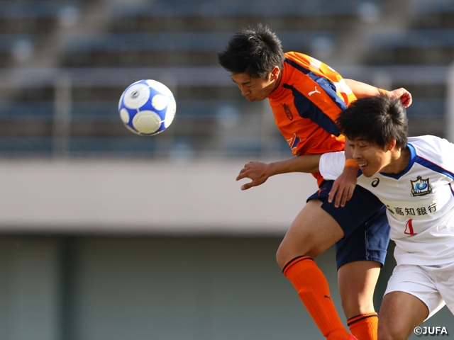 関東第5代表の法政大学と四国代表の高知大学の対戦は、思わぬ大差がつく結果となりました。試合が大きく動いたのは前半の16分。法政大学のディサロ 燦 シルヴァーノ選手を、高知大学の山下裕司選手がペナルティエリア内で倒し、高知大学の山下選手が退場に。法政大学はこのファウルで得たPKを柳沢拓希選手が決めて先制すると、35分にも武藤雄樹選手が右サイドをえぐって2-0で前半を折り返します。さらに後半にも4点を追加した法政大学が6-0の大勝を収めました。