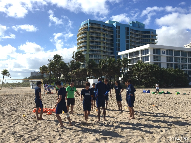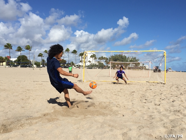 アメリカ・コスタリカ遠征中のビーチサッカー日本代表は1月12日(木)、アメリカでの合宿2日目を迎え、アメリカ代表戦に向けて午前と午後の2部練習を行いました。