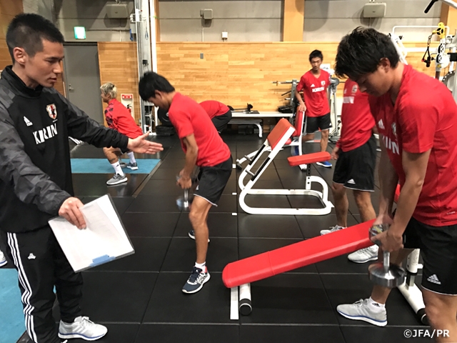 今日のトレーニングでは午前中はTAKAフィールドで紅白戦や戦術が中心のトレーニング、午後からは今回の合宿で2回目となるJISSでのフィジカルトレーニングでした。今回の合宿も非常に質の高い環境でトレーニングをさせていただいています。チーム戦術も監督・コーチの指導により1つ1つ課題をクリアし徐々に良くなっていますし、武井フィジカルコーチのトレーニングにより個々のフィジカル面でのレベルアップもできて、充実した日々を過ごせています。まずは沖縄でのドイツ代表との親善試合、そしてバハマで行われるW杯に向けてこれをしっかりと継続して最高の準備をしたいと思います。