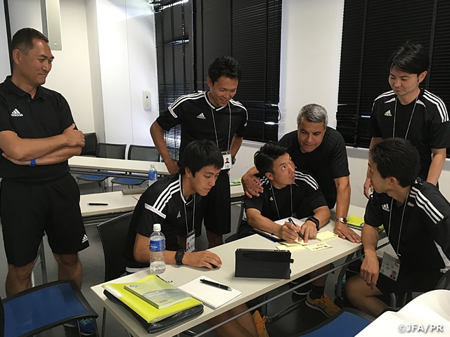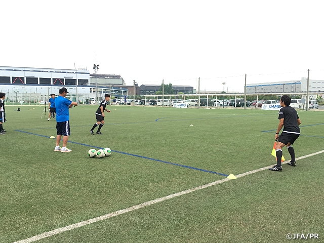 7月1日、2日と8日、9日の分散で開催された第3回ナショナルコンペティション(NC)担当審判員研修会は計40名が参加しました。座学ではフィジカル理論で暑熱対策を学んで夏場の試合に備え、論理的思考の講義ではクリティカルシンキングで「問う」という新たな物の見方について学びました。また、イングランドからインストラクターのRay Oliver氏を招いて「主審と副審の協力」についての講義を受け、プラクティカルトレーニングで実践しました。フィールドテストではダイナミックYo-Yoテストを行い、皆素晴らしい記録を出してくれました。プラクティカルトレーニングでは的確な判定のためには主審と副審の協力が不可欠であること、また、オフサイドの判定を撮影してインスタントフィードバックを行い、自分の判定の精度や改善点を確認することができました。彼らが担当する全国大会が7月から始まります。研修会の成果を生かして素晴らしいパフォーマンスを期待したいと思います。