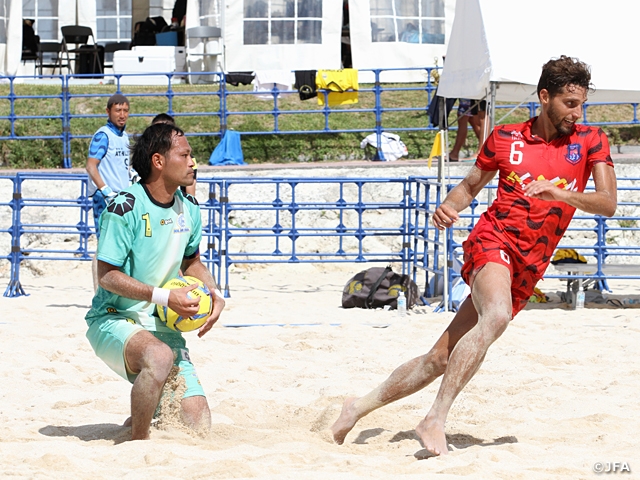 準決勝はいずれも1点を争う激しい戦いとなりました。ソーマプライアとドルソーレ北九州の一戦は、斉藤巧選手がハットトリックを決め、4-3で第10回大会王者のドルソーレ北九州を退けました。もう一方の準決勝、フュージョンと東京レキオス一戦は、ビーチサッカーの強豪であるタヒチ代表のエマニュ・タイアルイ選手の2ゴールもあり、フュージョンが3-2で勝利を手にしました。
