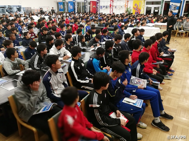 11月23日(木・祝)から26日(日)にかけて、「ナショナルトレセンU-14後期 地域対抗戦」が静岡県裾野市の時之栖スポーツセンターで実施されています。全国から選抜されたU-14、U-13の選手、合計316人がそれぞれの地域を代表して試合を行います。試合のほか、トレーニングやU-17日本代表の森山監督のレクチャーをはじめ、様々なプログラムが行われます。