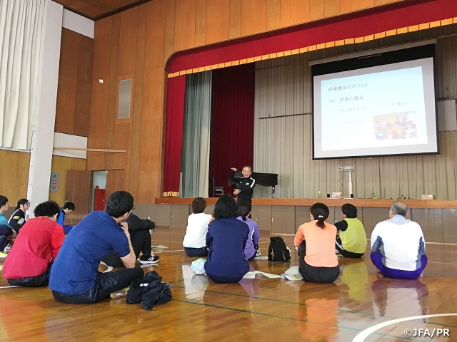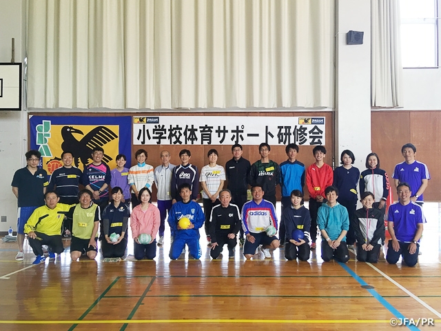 3月31日(土)、長崎県の長崎南山小学校にて「小学校体育サポート研修会」を開催しました。この研修会は体育やサッカーの授業を苦手とする先生たちをサポートするために2014年から実施しているもので、今回初めて、スポーツ庁の後援のもと開催しました。