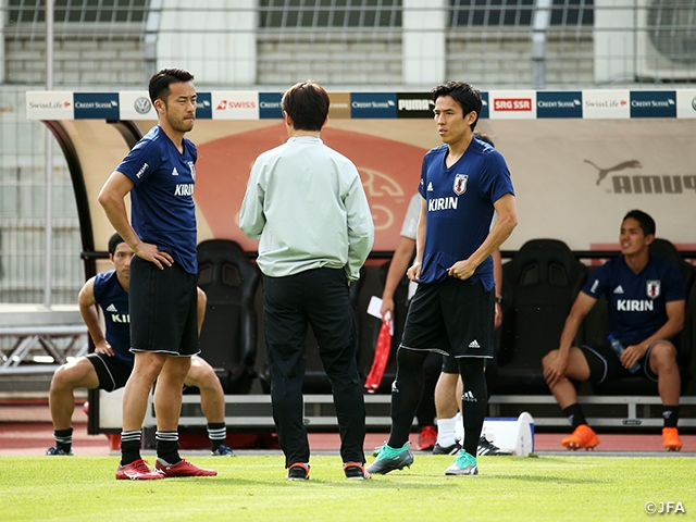 西野監督の初陣となった5月30日(水)のキリンチャレンジカップ2018ガーナ代表戦では、新たに3バックのシステムも試して0-2で敗れましたが、チームの戦い方のオプションを増やことを主眼に、意欲的に取り組んできました。欧州へ来てからは従来から採用してきた4バックも採用しています。また、以前から取り組んできた「縦に強く速い」攻撃の意識と、ボールポゼッションを掛け合わせた攻撃の融合を考えています。