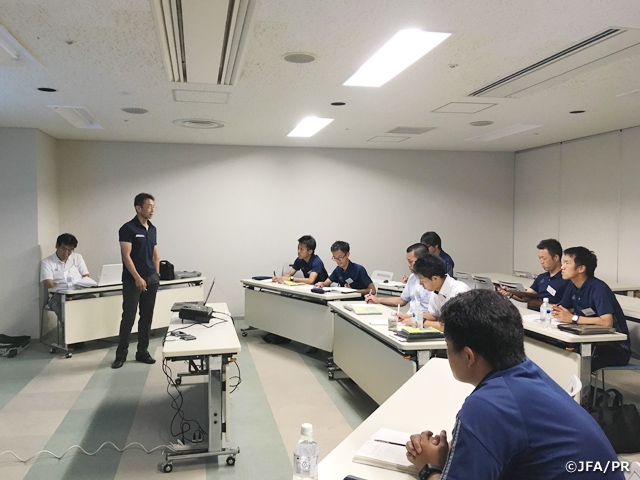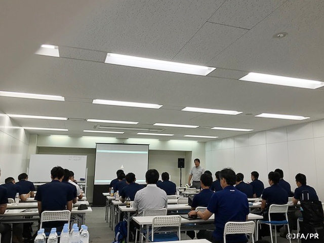 今回の研修プログラムは、「①競技規則改正説明・Game Empathy ②グループによるプレゼンテーション ③ヘディングの競り合いの見極め ④前半戦の振り返りとまとめ」を行ないました。