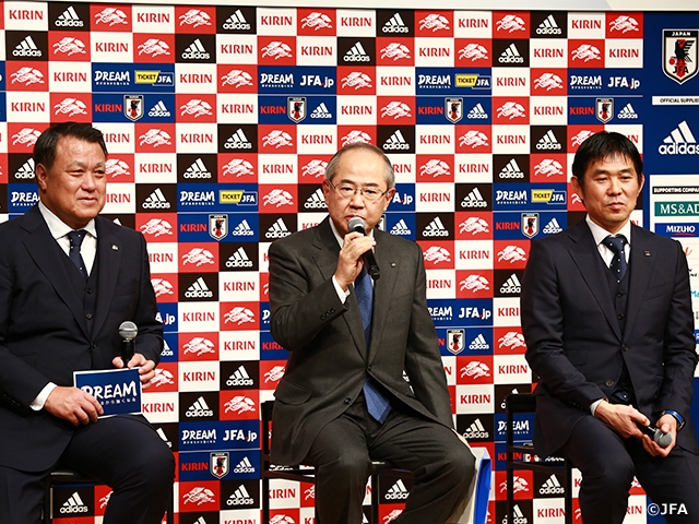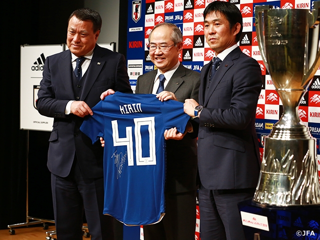 この40年間のキリン様のご支援でわれわれは素晴らしい活動、素晴らしい経験をさせていただいて、日本代表の成長につながってきていると改めて感じました。そして日本代表ファミリーの強化だけでなくて、サッカーをより多くの方に知っていただくこと、サッカーと地域を結びつけてくださること、サッカーと人を結びつけてくださるサポートをしていただけていることは本当にありがたいことです。われわれは日頃、支援していただいていることを、結果をもって、そして、サッカーの成長、発展をもって恩返しさせていただければと思います。