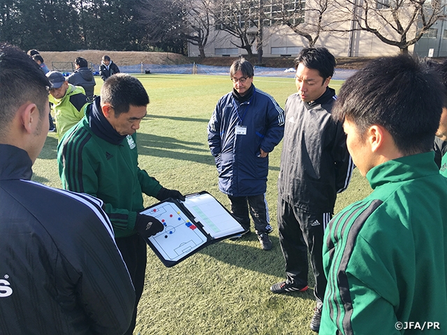 プラクティカルトレーニング時に審判員が失敗して迷ったとき、見解を求められましたが、その場では応えることができずにうやむやにしてしまいました。「モヤモヤを解消させるための誘導をしてあげてください。」とご指導いただきましたが、まず自分の情報量が足りないことを思い知らされました。競技規則を人に伝えられる程は未だ理解していないことが分かりました。プラクティカルメニューの目的と狙いを設定し、予想されるエラーと改善すべきポイントをチームで話し合いましたが、想定外のことが起きた時に問われるのが個人の人間力だと感じました。普段から県トレセンや関東での研修に参加させていただいていますが、指導者の方々がどれだけの時間をかけて準備してくださっているかを思い、改めて感謝するとともに、自分もそのような指導者を目指して努力していかなければならないと強く思いました。最後にこのような学びの場を提供してくださったJFAの指導者並びにスタッフの皆様、栃木県サッカー協会に感謝申し上げます。