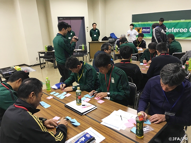 1日目の後半から2日目にかけては「審判員の指導法を学ぶ」ことをテーマに「レフェリーアナリシス」、「プラクティカルトレーニング」、「チュータリング」について講話いただき、実践をしました。やや控えめな性格の栃木県人の集まりですが、高橋RDOや斉藤イントレマネージャーのスムーズな進行により、いつもより活発に活動できたと思います。ここで得た知識やスキルを活かし、若い審判員を育成し、素晴らしいゲームをコントロールすることが栃木県の競技力向上に繋がると信じています。