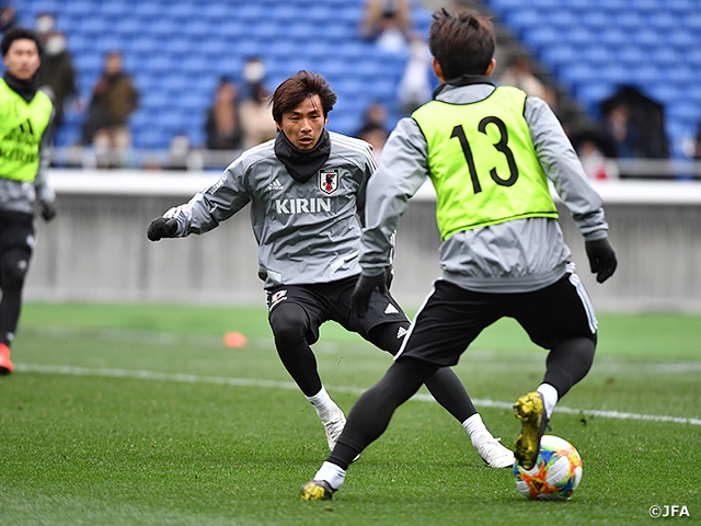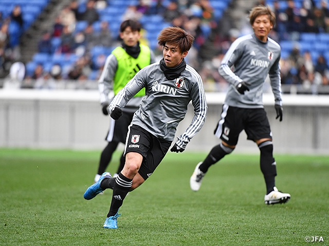 SAMURAI BLUE(日本代表)は3月23日(土)、キリンチャレンジカップ2019コロンビア代表戦から一夜明けて、26日(火)に控えるボリビア代表戦(ノエビアスタジアム神戸)へ向けて練習を再開しました。