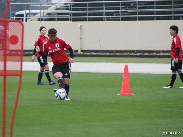 今日のトレーニングでは最後に紅白戦を行いました。チームとして攻撃の部分で意識してやろうという中で、センターバックの自分からのビルドアップで近くに出すだけではなく、遠くも見ながら、というのはやれた部分だと思いました。アンダー世代のワールドカップが中止になったことは仕方のないことで、気持ちの切り替えは早くできたと思っています。いずれはなでしこでプレーしたい、トップでより強い相手と戦いたいという思いもあって、ここで生き残ることもそうですが、日々レベルの高い選手と一緒にプレーできることや、アンダー世代にはない強さを持った海外の選手と戦えることを楽しみに毎日過ごしています。自分の持っているものも練習で出さないといけませんが、評価は監督やコーチがしてくれるので、目の前の練習や試合に集中して全力を注いでいきたいと思っています。パススピードに関しては自分の中で意識しています。この代表合宿でも出せている部分があるとすれば、それは日頃の取り組みの成果かなと思いますが、まだまだ質が良くない部分もたくさんありますし、このチームでも強く求められるところなので、他の選手よりも群を抜いていける存在になりたいです。チームでは色々なポジションをやらせてもらっていて、どのポジションならいいというよりは、「どこでもやってやろう」という気持ちの方が強いです。世界のトップレベルの映像はミーティングでもたくさん見るので、今のままではだめと常々感じていますが、そこに挑戦できるように日々トレーニングを積んでいるので、そういったトップレベルの選手にどう対応できるか、常に意識して取り組んでいます。育成年代の中でも素晴らしい選手がたくさんいて、そうした選手たちとワールドカップやアジアカップで対戦する機会があったことが今の自分の成長につながっていると感じています。