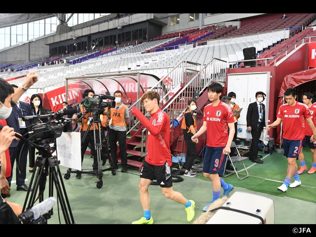 6月11日(金)にノエビアスタジアム神戸で約1年半ぶりに行われたキリンチャレンジカップ2021 SAMURAI BLUE 対 セルビア代表戦で、JFAユースプログラムの「リモートチアキッズ」を実施しました。この試合は無観客で実施しましたが、オンライン会議システムZoomを利用し、子どもたちとスタジアムをリモートでつないで、選手を応援しました。