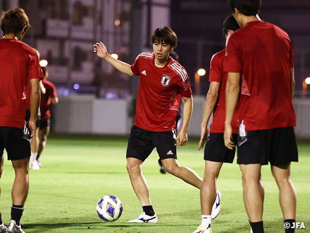 10月4日(月)、アジア最終予選(Road to Qatar)サウジアラビア代表戦を控えるSAMURAI BLUEはサウジアラビア/ジッダに入ってから初めてピッチでのトレーニングに励みました。この日は日本から出発したJリーグ所属の5選手が到着し、合計17人の選手たちで始動しました。