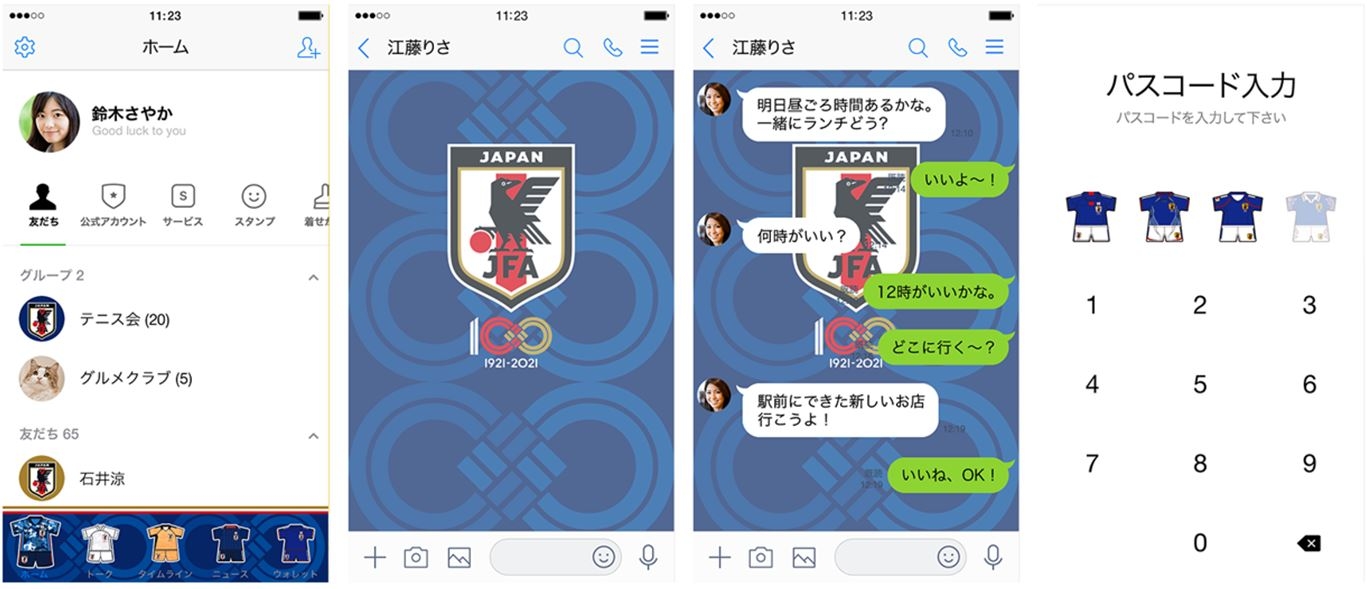 日本サッカー協会(JFA)は10月7日(木)より、コミュニケーションアプリ「LINE」でお使いいただける「サッカー日本代表100周年記念着せかえ」と「サッカー日本代表オフィシャルスタンプ」の販売を開始します。