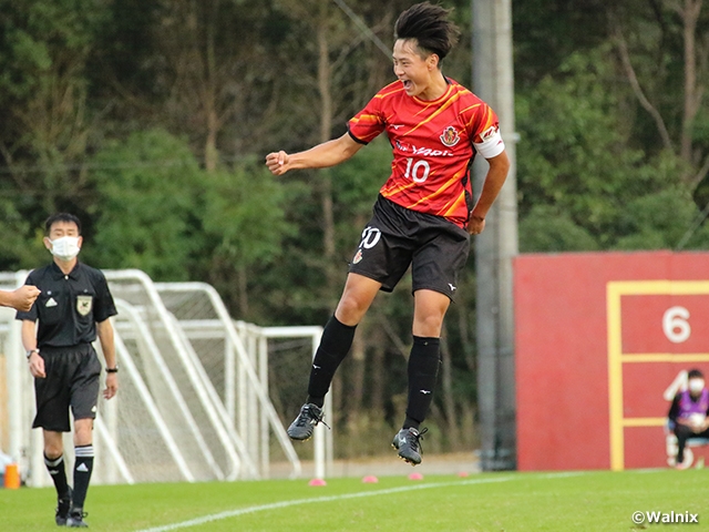 京都サンガF.C. U-18(京都)と対戦する名古屋グランパスU-18(愛知)の鍵を握るのは、大阪府出身のFW真鍋隼虎選手(#10)。今季、関西勢との対戦では5試合で6ゴールと活躍が際立っています。京都は出場した試合で唯一、ゴールが奪えなかった相手であるため、今節の活躍によって関西の全チームから得点を奪えるか注目です。