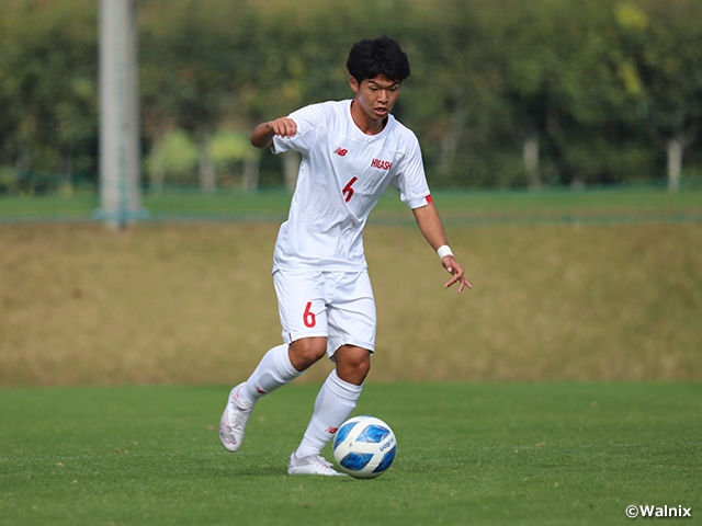 大津高校との九州対決に挑むのが、東福岡高校(福岡)です。粘り強い守備からのカウンターを狙うJリーグのアカデミーとの対戦時とは違い、今節はボールを持つ展開が増えると予想されます。MF向井貴都選手(#6)ら中盤の選手が、リーグ最少失点を誇る大津の堅守を切り崩すことができれば、勝機が広がります。