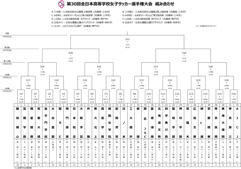 第30回全日本高等学校女子サッカー選手権大会 組み合わせ および 決勝テレビ放送決定のお知らせ
