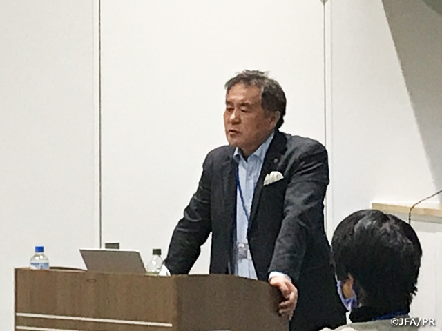 「Jリーグアカデミーの取組み」では増本伸弘氏より「2030フットボールビジョン」と「Project DNA」を中心に、ワールドクラスの選手を育て輩出するためのプロジェクトや、指導者やスタッフの人材育成といった取り組みのお話をしていただきました。「規約・契約」では吉田紀代美氏より、1)契約の安全性、2)FIFAによる紛争解決、3)未成年(U-18)の保護、4)トレーニングへの補償/連帯貢献の概念についてお話をいただきました。