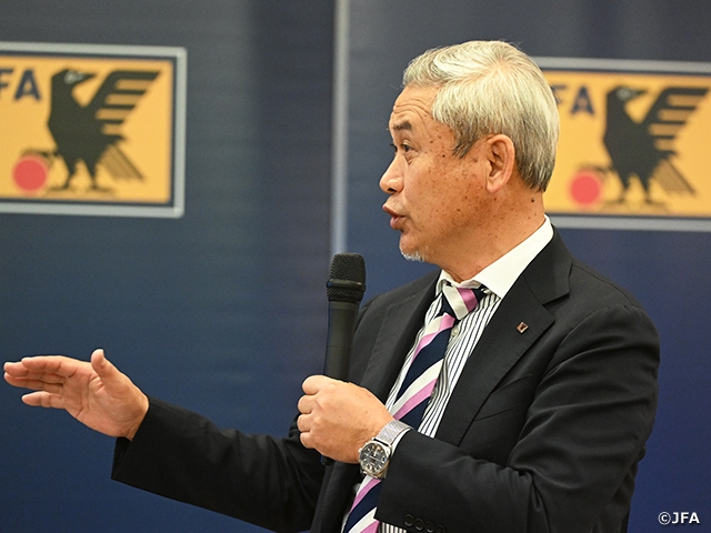 女子ワールドカップに挑むなでしこジャパン(日本女子代表)について、佐々木則夫JFA女子委員長は「選手たちは成長し、自信が芽生えています。7月から始まる女子ワールドカップに向けてさらにステップアップして皆さんのご期待に応えたいですし、もっともっと日本の女子サッカーを高めていきたいと思っています」と意気込みを語りました。