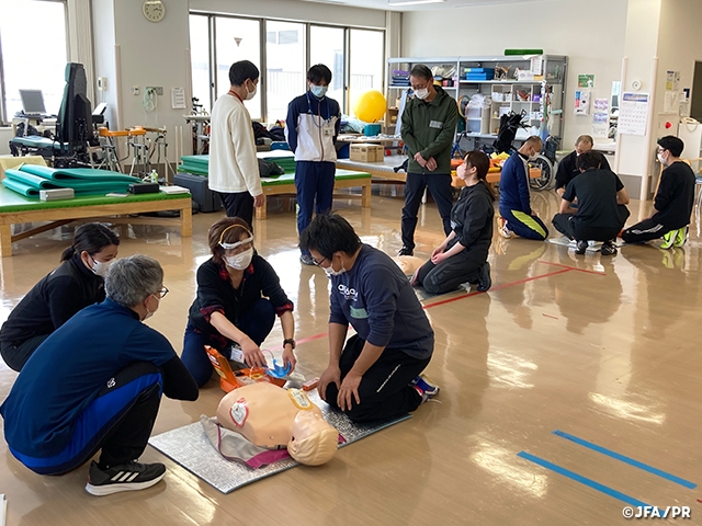北海道サッカー協会は2月25日(土)、社会福祉法人北海道社会事業協会富良野病院リハビリテーションセンターで「スポーツ救命ライセンス講習会」を開催し、更新講習会に2名、新規講習会に13名が参加しました。