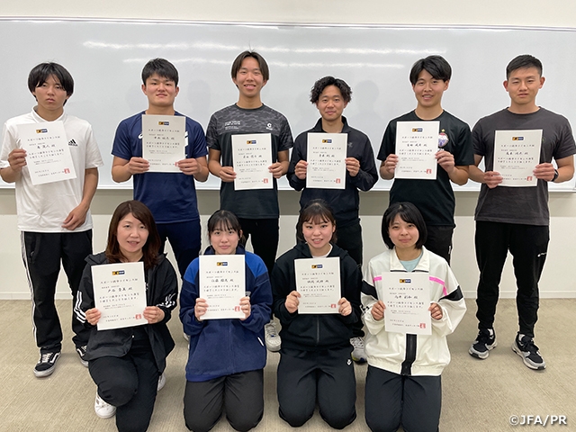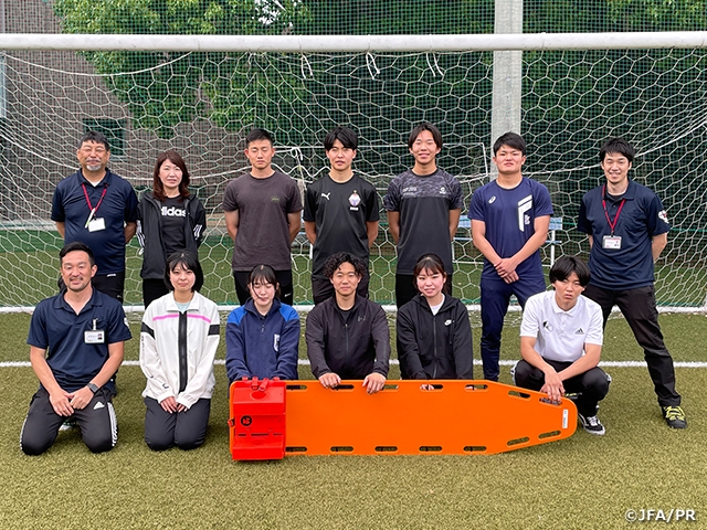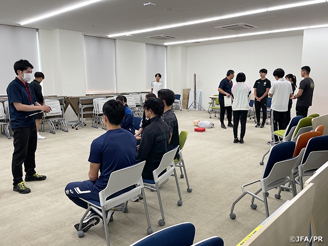 日本サッカー協会は、ピッチ上の選手の安全を守ることを第一とした「スポーツ救命ライセンス講習会」と簡易救命講習会である「JFA+PUSHコース」を2017年から実施しています。「スポーツ救命ライセンス講習会」は、(公財)日本スポーツ協会(JSPO)公認アスレティックトレーナーが資格更新のために保有しなければならないBLS(Basic Life Support:一次救命処置)資格取得のための講習会として認定されています。