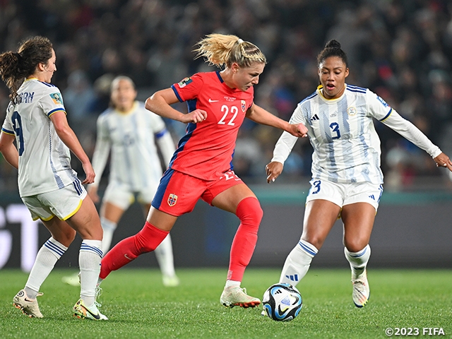 ノルウェーは開催国ニュージーランドとの開幕戦で敗れましたが、ハウグ・ソフィー選手のハットトリックやキャロライン・グラハム・ハンセン選手の得点などでフィリピンに6-0と完勝し、得失点差でニュージーランドを上回ってグループAの2位に。L・リーグの日興證券女子サッカー部ドリームレディースでプレーしたヘーゲ・リーセ監督が指揮し、豪快なクロスや力強いミドルシュートが武器の古豪に日本が挑みます。