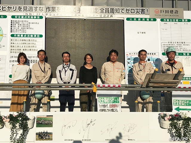 「クラブハウスから男子など他のカテゴリーの代表練習を見ることができるので、なでしこの練習にもうまく取り入れられる」とも語り、日本サッカー全体がここ夢フィールドに集まることによって様々な共有が図れるメリットも口にしました。また、「コーチやトレーナーとクラブハウスでピッチを見ながらミーティングができるので、イメージが湧きやすい。すぐに目の前のピッチで実践ができますね」と、来年の春にオープン予定の夢フィールドの完成を楽しみにしながら、最後まで笑顔で会場を後にしました。