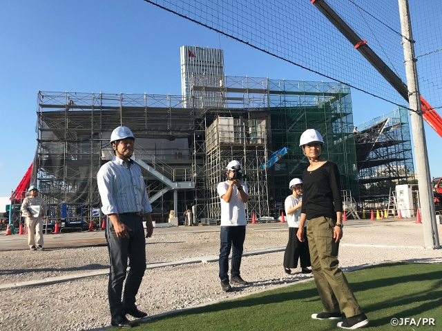 10月9日(水)、なでしこジャパン(日本女子代表)の高倉麻子監督が千葉県立幕張海浜公園内に建設中のJFA夢フィールドを訪れ、工事関係者が案内する中、現場視察を行いました。