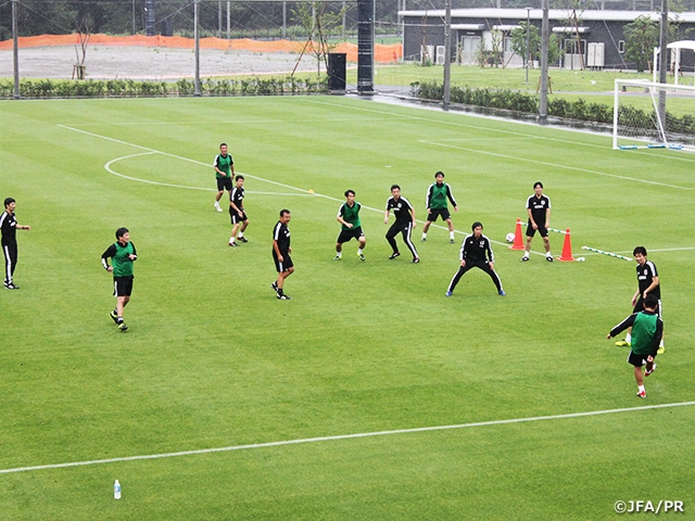 新型コロナウイルスの影響もあり、こうして顔を合わせるのも数カ月ぶりとなったコーチングスタッフ陣、しかしサッカーボールがあればそんな時間の壁はあっという間に取り払われます。あいにくの天候でのプレーとなりましたが、一緒にボールを蹴ることでサッカーの楽しさを共有し、より深いコミュニケーションが取れ、天気と裏腹に一様に晴れやかな表情を見せていました。