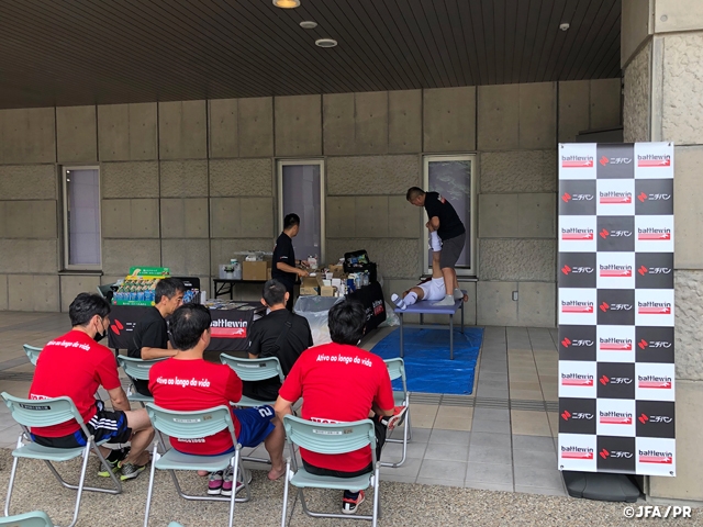 6月24日(土)から26日(月)まで静岡県藤枝市で開催された「JFA 第22回全日本O-50サッカー大会」において、JFAコンペティションパートナーであるニチバン株式会社の「テーピングサポートブース」が出展されました。