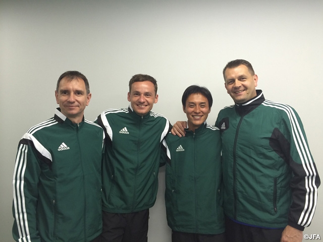 5月27日(火)、埼玉スタジアム2002で行われるキリンチャレンジカップ2014 SAMURAI BLUE(日本代表) 対 キプロス代表を担当するポーランドの審判員が、26日(月)埼玉スタジアム2002にて前日練習を実施しました。
