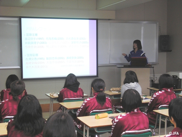 また今回の講師陣には、S級インストラクターの大岩真由美氏と国際女子副審として活動している手代木直美氏を迎え、5月のなでしこジャパンも参加したベトナムでの女子アジアカップや、3月にポルトガルで行われたアルガルベカップでの体験談や映像、写真などを用いて世界で活躍する女性審判インストラクター、審判員の姿を伝えることができました。