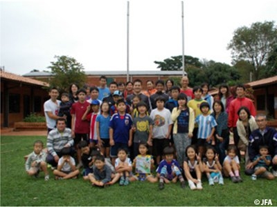 パラグアイに派遣されている佐藤隆治・大塚晴弘・唐紙学志の3審判員がアスンシオン地日本人学校を表敬訪問、先生、生徒から温かい歓迎を受けた。