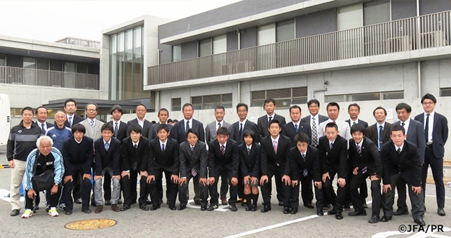 今回は、各地域から推薦された審判員9名及び2014年度の第38回全日本少年サッカー大会に参加した審判員の中から3名の合計12名の審判員と、各地域から推薦されたユース指導の中核を担うインストラクター9名の総勢21名が参加しました。